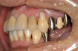 歯が中間で1本だけ抜けた場合でも、隣の健康な歯を削ったり、負担をかけたりしないで、人工歯を取付けることが出来ます。