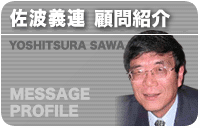 佐波顧問のあいさつ、そして簡単なプロフィールを略歴として紹介しております。